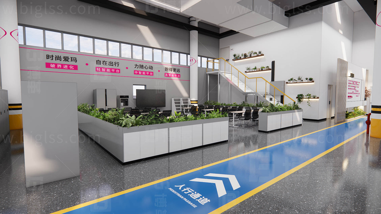 對外參觀的VIP主通道是車間目視化設計規劃一大亮點,如何更好的利用空間通過對主通道的裝飾提升客戶參觀的體驗感,讓來訪人員了解到企業核心競爭力則是這一景點的關鍵所在。